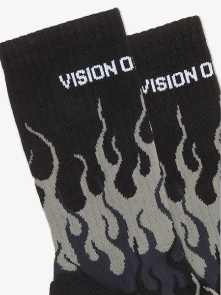 On SaleVision Of Super Calzini neri fiamme linea bianche