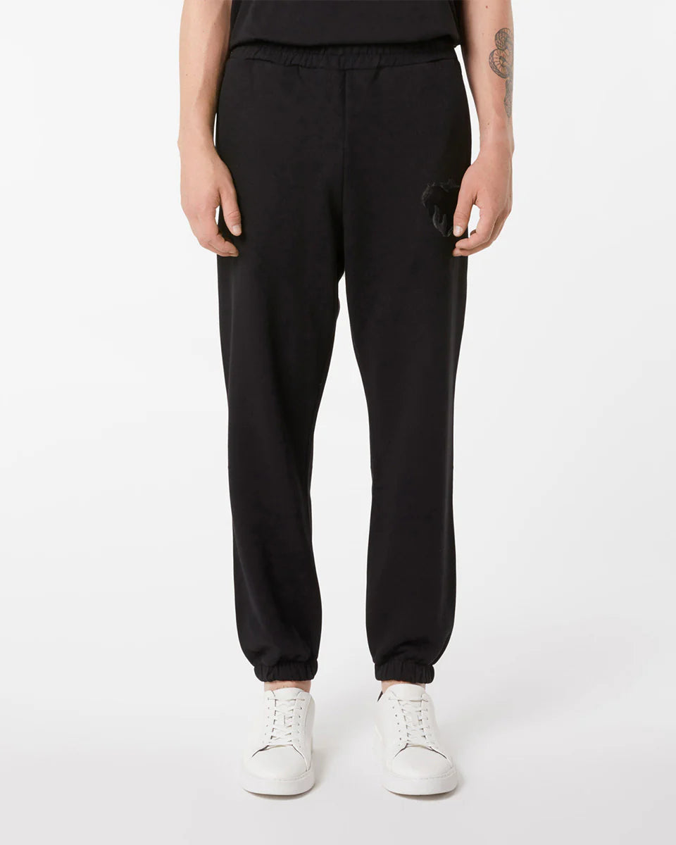 On SalePantalone tuta nero con cuore fiammeggiante ricamato