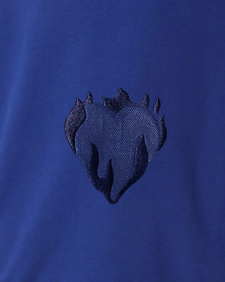 On SaleFelpa girocollo blu con cuore fiammeggiante ricamato