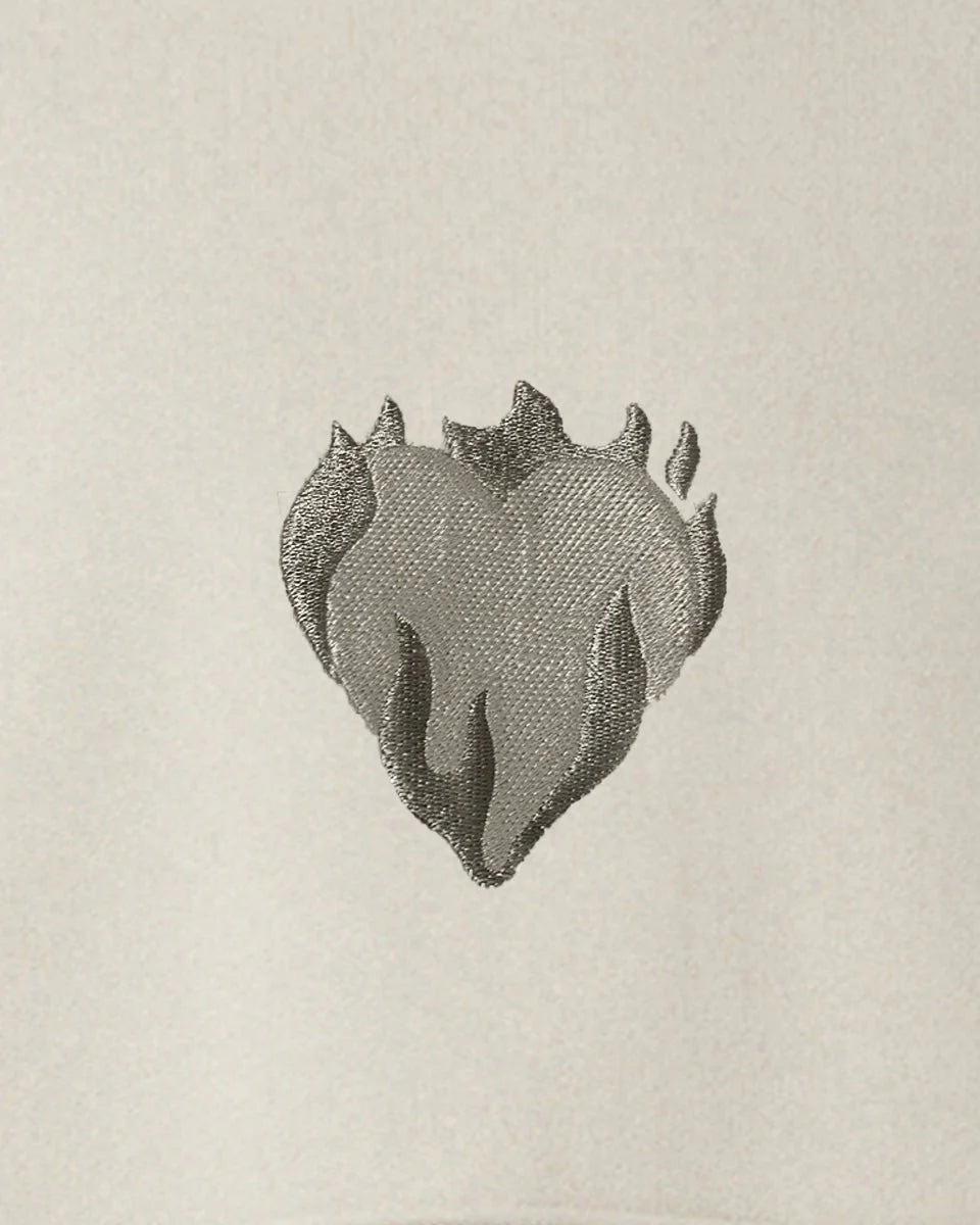 On SaleFelpa con cappuccio grigia con cuore fiammeggiante ricamato